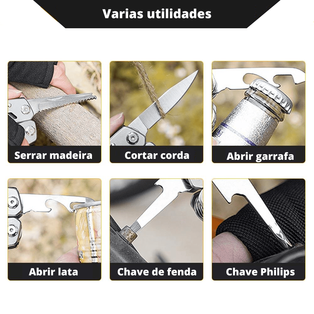 Cansado de ter que levar a caixa de ferramentas para todo lugar? Conheça o Alicate Multifuncional 12 em 1. Agora as suas ferramentas cabem no seu bolso!🔧🔨